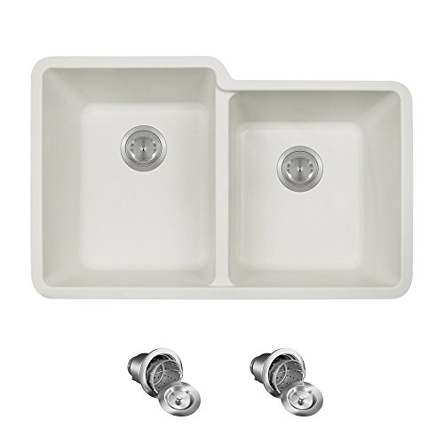 Professional reviews from industry experts MR Direct 801-W-BSKT White Undermount Granite Composite 32-1/2 in. Double Bowl Kitchen Sink Basket Strainers, 2